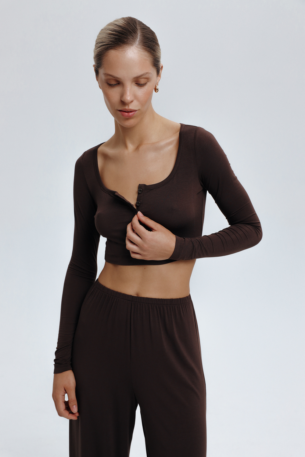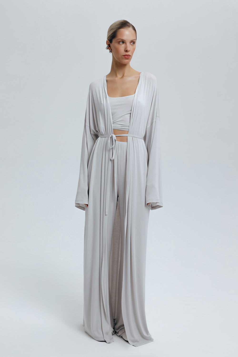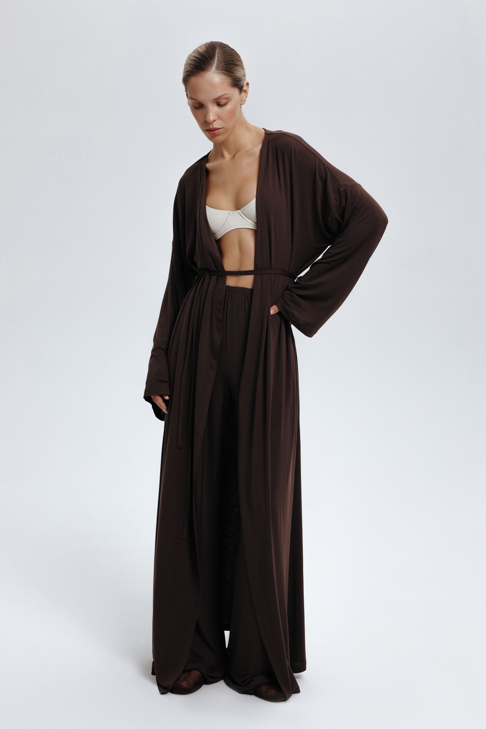 Флагмани колекції NAKED — напівпрозорі кардигани, штани і топи. Для їх виготовлення бренд обрав ідеальну для спеки тканину, у складі якої 95% модалу. Модал — це якісна, сучасна тканина на основі целюлози бука. Вона належить до екологічних матеріалів, вирізняється м’якістю, шовковистістю та високою повітропроникністю. До того ж, модал прекрасно зберігає форму навіть після численних прань — ідеальний вибір для легкого жіночого одягу на літо.