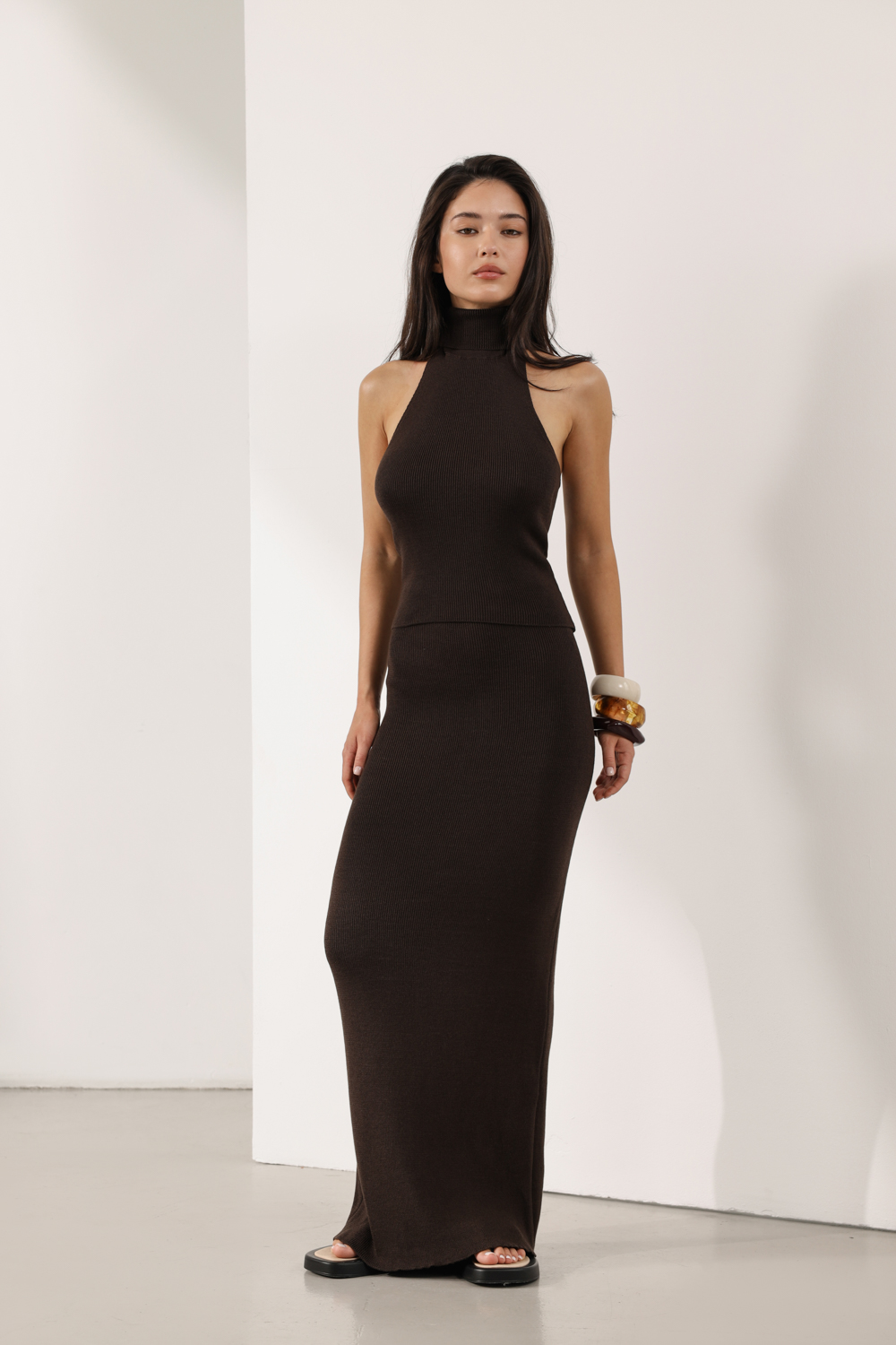 Більшість речей можна легко міксувати між собою, створюючи функціональні жіночі образи для літа і осені, що адаптуються до мінливої погоди. Палітра — світла, з фірмовим акцентом dark chocolate, що додає глибини.
